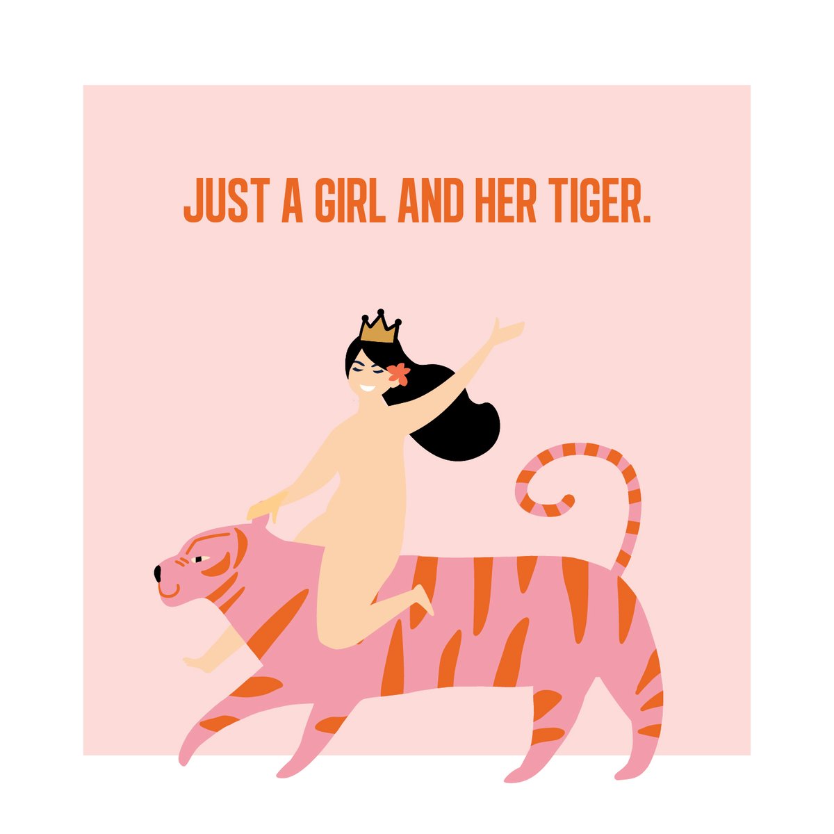 Just a girl and her tiger. Send these fun note cards to your friends mailboxes! Six flat note cards printed on #120 smooth white card stock with accompanying white envelopes. I can customize the hair and skin tone. 4.25x5.5 inches.
