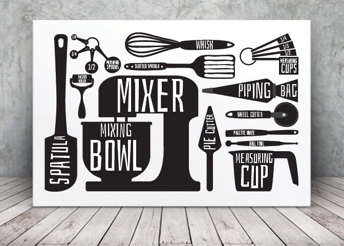 Do you know someone that loves to cook? They'll want to hang/frame this print in their kitchen and show off the tools of their trade. 11x14 white #100 cardstock. This DOES NOT come framed.