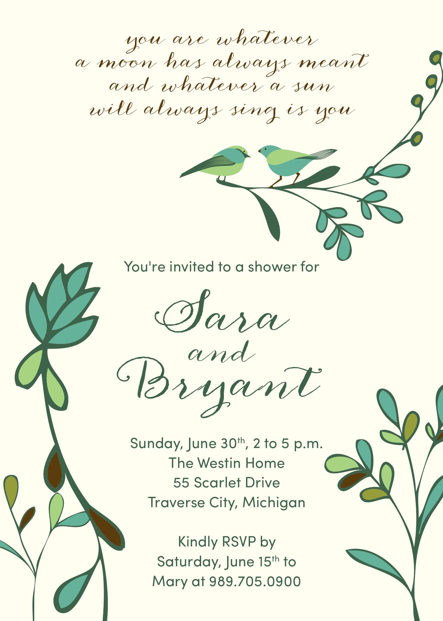 Birds and Branches Shower Invitation (i carry your heart with me - poem)
