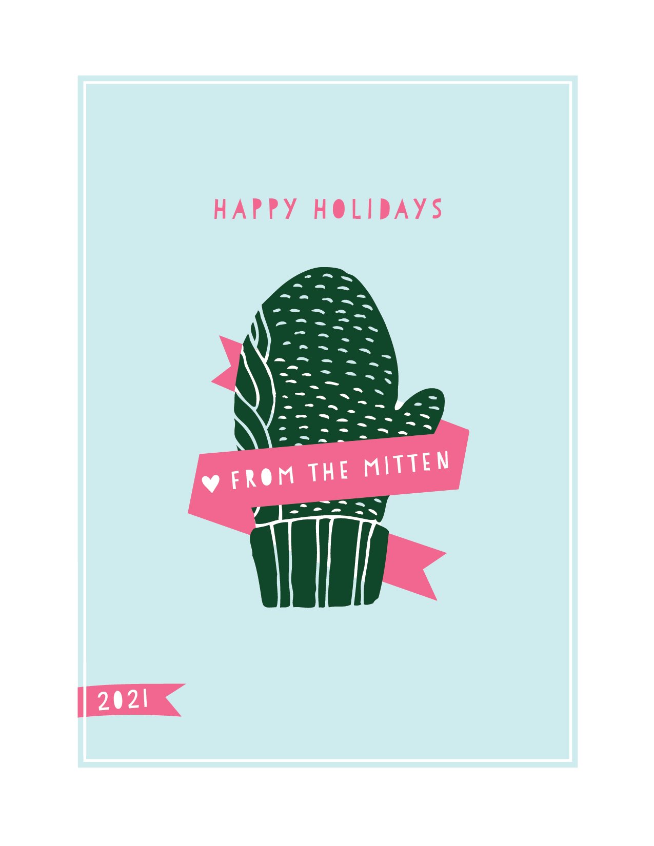 What better way to say hello than with this simple mitten themed card. Whether you're from Michigan, the "mitten" state or not, your friends and family will be "smitten!" I can customize the color combination and the wording at the top of the card. There are additional greetings in the photo section for you to view as samples including one if you love Michigan footbal Go Green/ Maize + Blue, etc.) l. I can customize the wording to suite your needs.