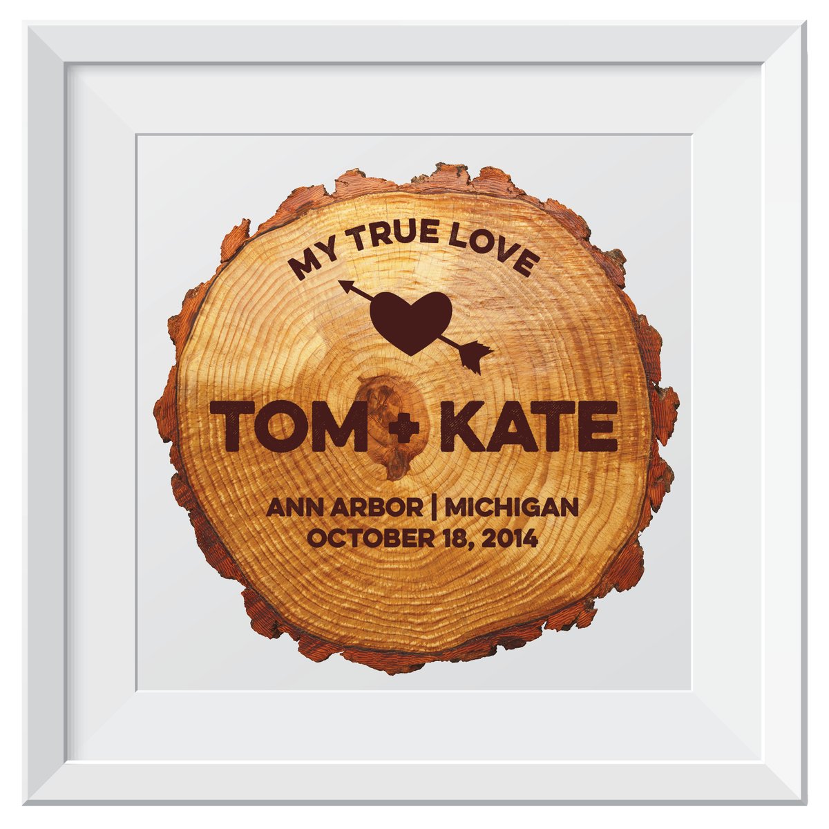 What's more romantic than carving your true loves name - somewhere for all of eternity! Here's a sweet gift to keep or give as a gift to your favorite couple. THIS DOES NOT COME FRAMED.